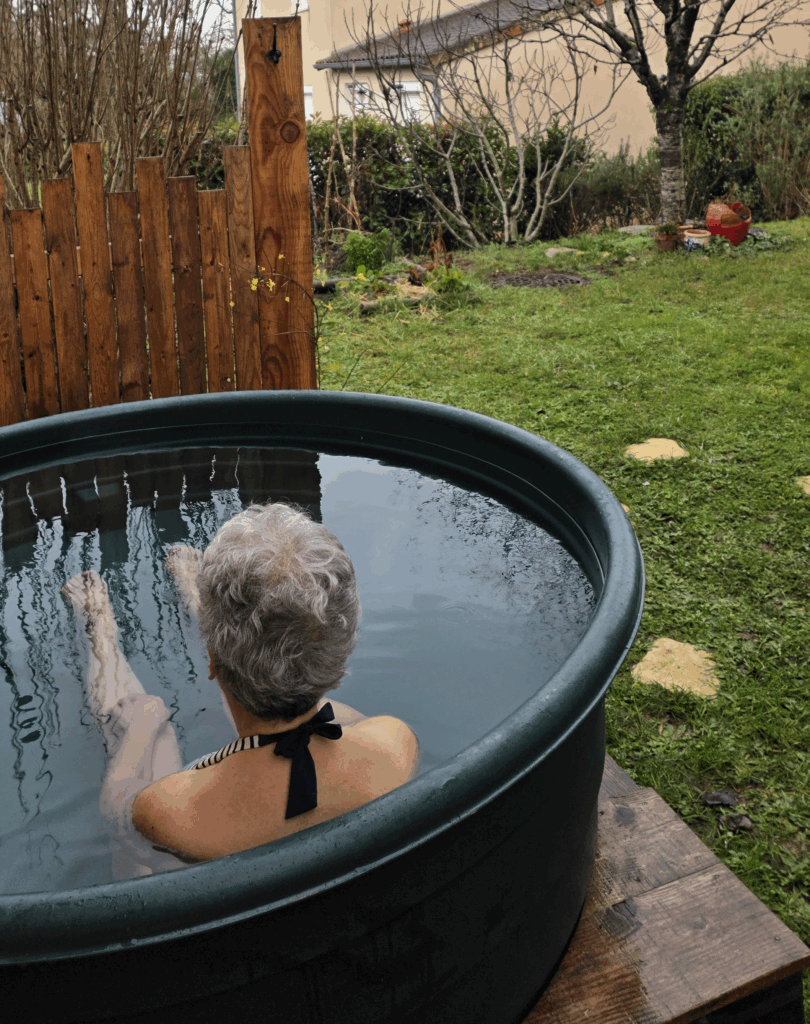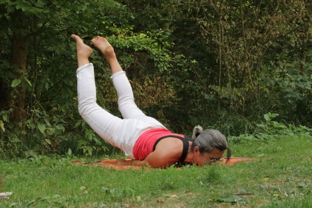 Je propose une heure de yoga en extérieur, en maillot de bain et une immersion dans l’eau – bac d’eau en extérieur.